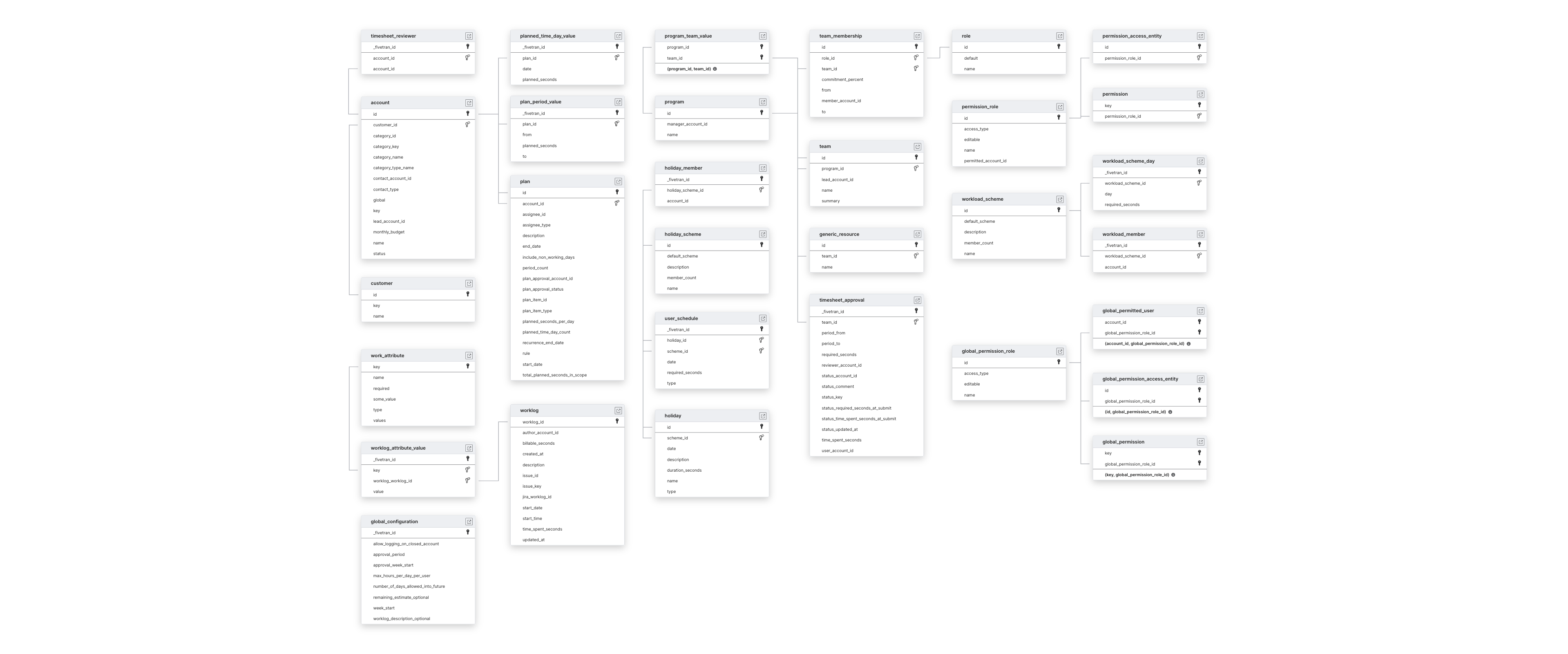 | Capture deletes | check | ACCOUNT, CUSTOMER, GENERIC_RESOURCE, GLOBAL_CONFIGURATION, GLOBAL_PERMISSION_ROLE, HOLIDAY, HOLIDAY_MEMBER, HOLIDAY_SCHEME, PERMISSION_ROLE, PROGRAM, ROLE, TEAM, TEAM_MEMBERSHIP, TIMESHEET_REVIEWER, WORK_ATTRIBUTE, WORKLOAD_MEMBER, and WORKLOAD_SCHEME tables. |