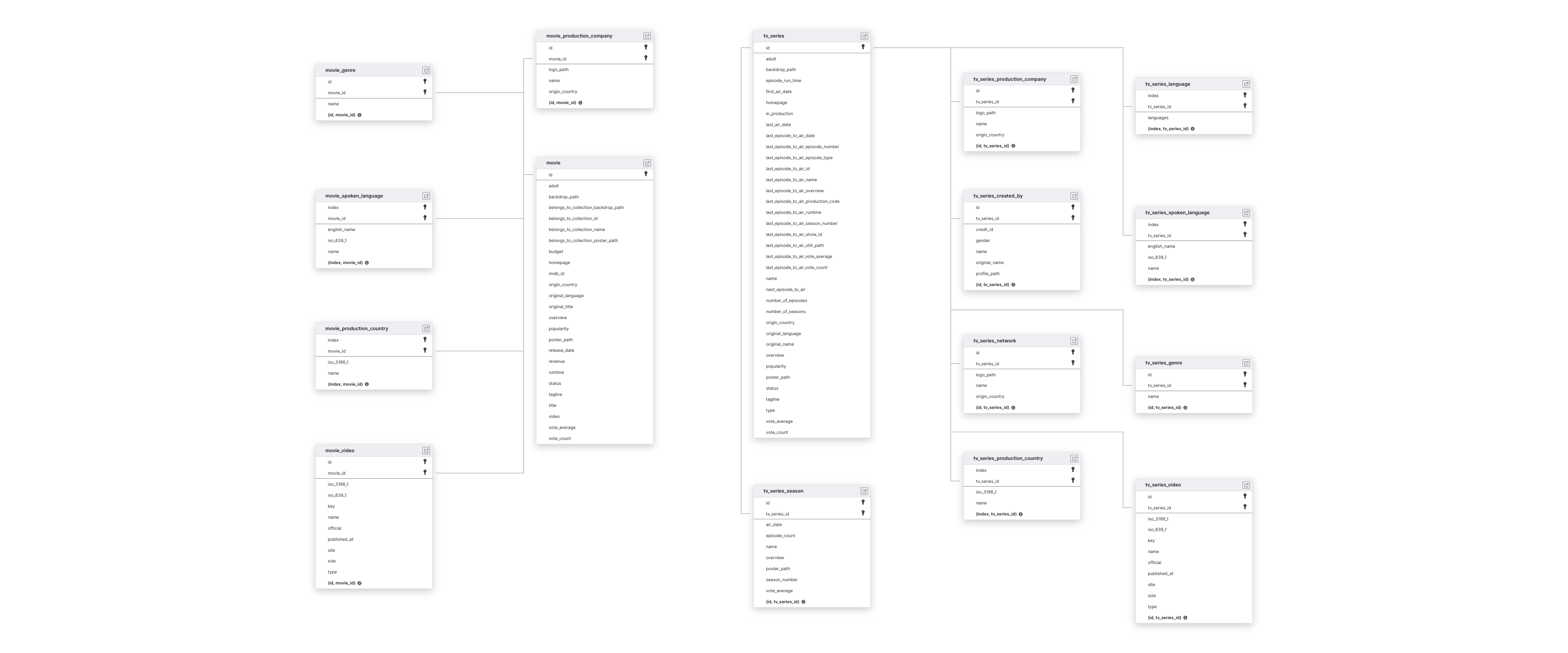 This schema applies to all The Movie Database connections.