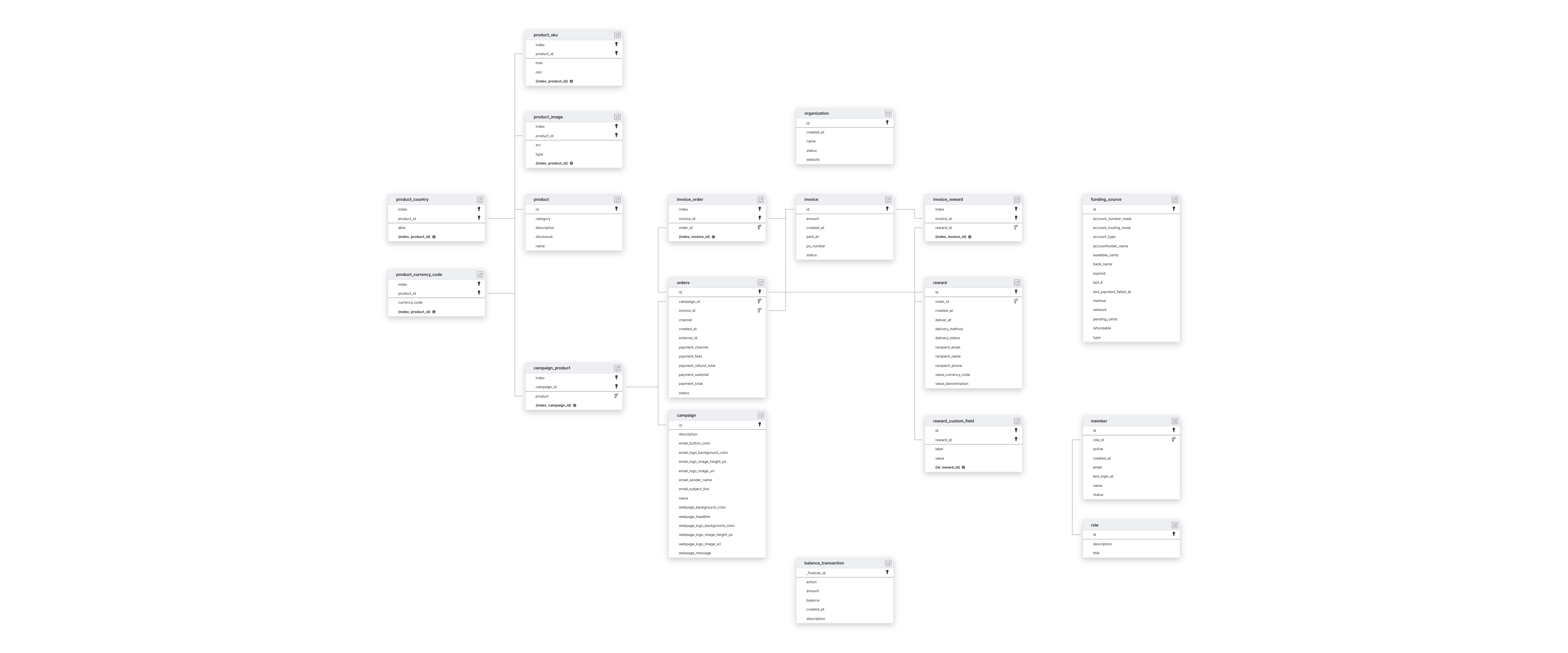 CAMPAIGNFIELDFUNDING_SOURCEMEMBERORGANIZATIONPRODUCTROLE