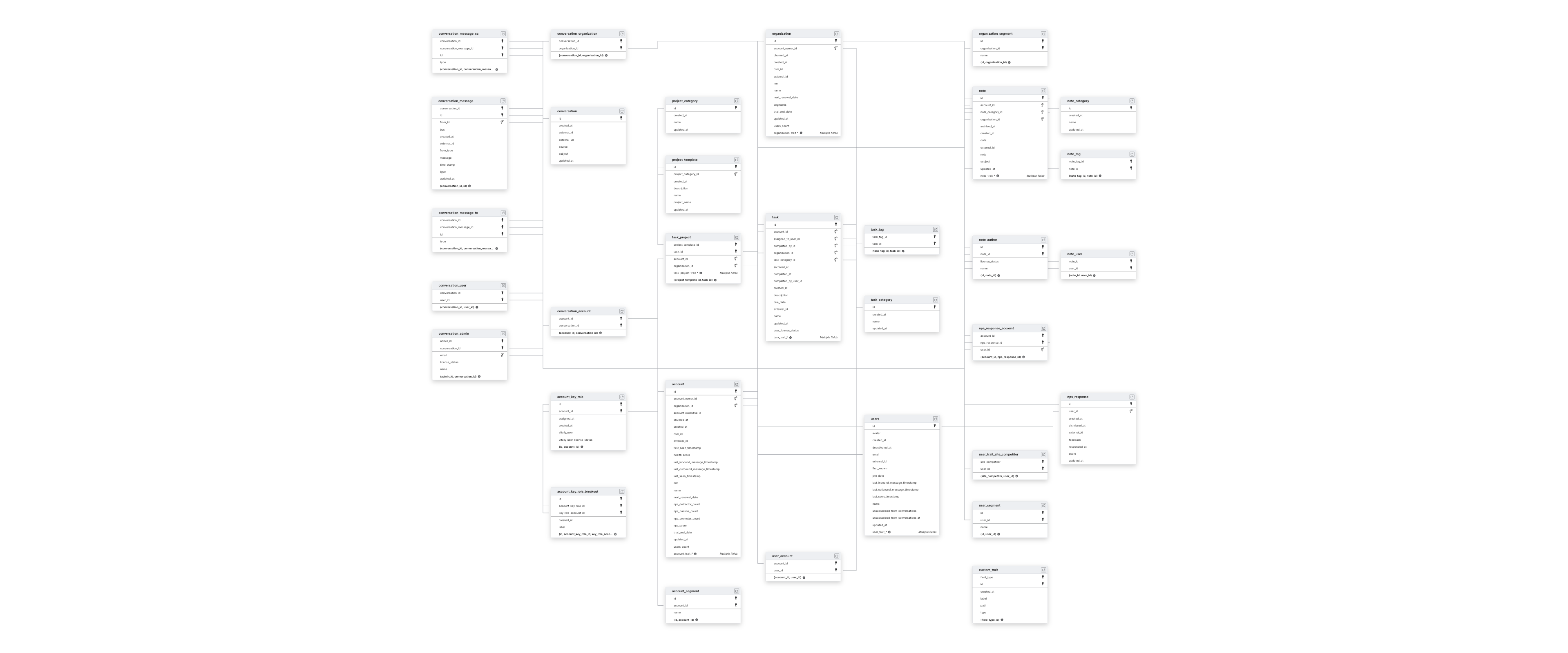 ACCOUNTCUSTOM_OBJECTCUSTOM_TRAITNOTENOTE_CATEGORYNPS_RESPONSENPS_RESPONSE_ACCOUNTORGANIZATIONPROJECT_CATEGORYPROJECT_TEMPLATETASKTASK_CATEGORYTASK_PROJECTUSERS