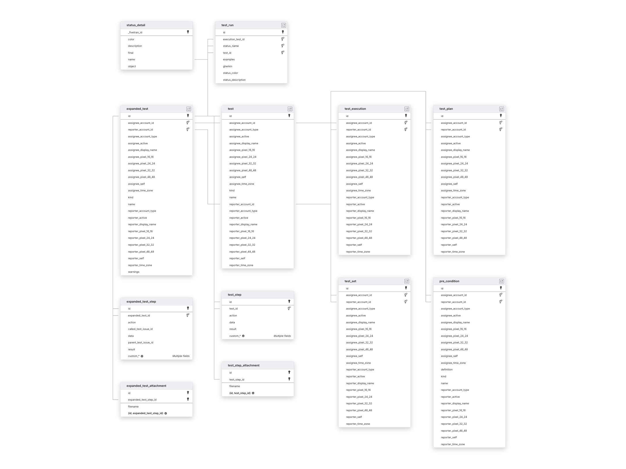 | Custom data | check | EXPANDED_TEST_STEP and TEST_STEP tables. |