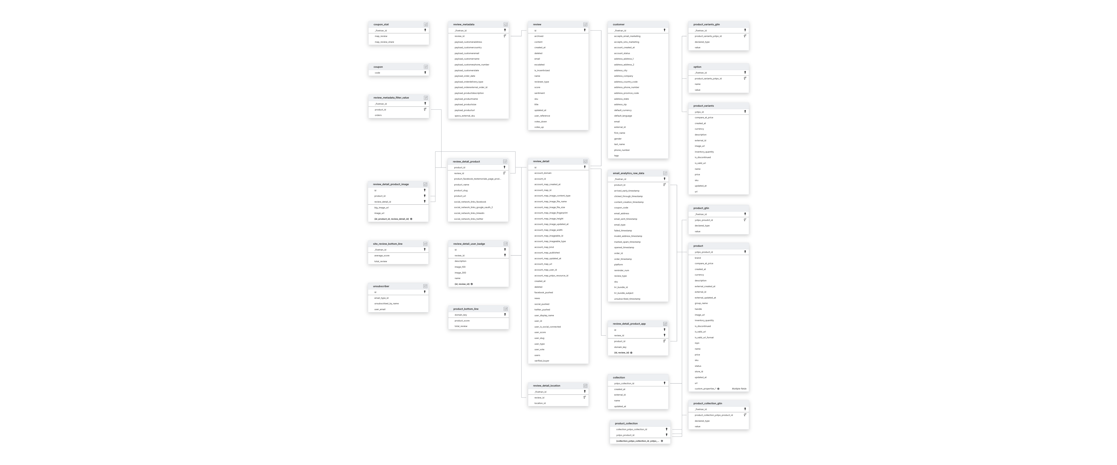 To capture new records, we incrementally sync the CUSTOMER and REVIEW tables and their child tables.