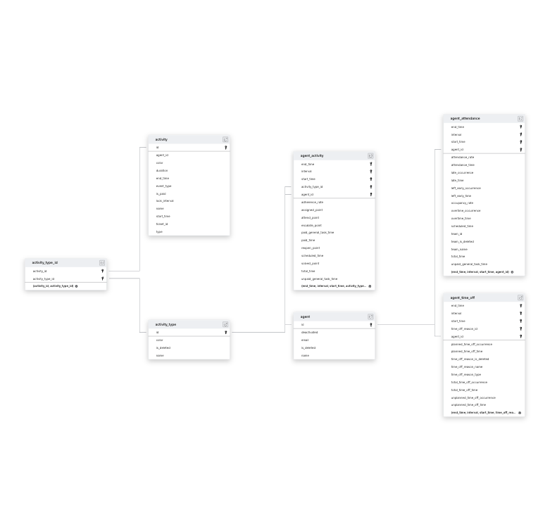 ACTIVITYACTIVITY_TYPEAGENTAGENT_ACTIVITYAGENT_ATTENDANCEAGENT_TIME_OFF